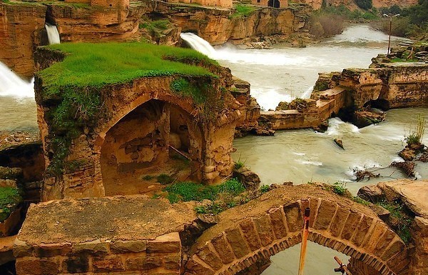 Shushtar, Home to the famous Shushtar Watermills and one of the oldest fortress cities in Iran, known as the "City of Forty Elders" in local dialect. In and around Shushtar, there are many displays of ancient hydraulic engineering. There are also the Band Mizan and Band Qeysar, 2000 year old dams on the Karoun river and the famous Shadervan Bridge which is over 2000 years old.The Friday Mosque of Shushtar was built by the Abbasids. The mosque, which features "Roman" arches, has 54 pillars and balconies.